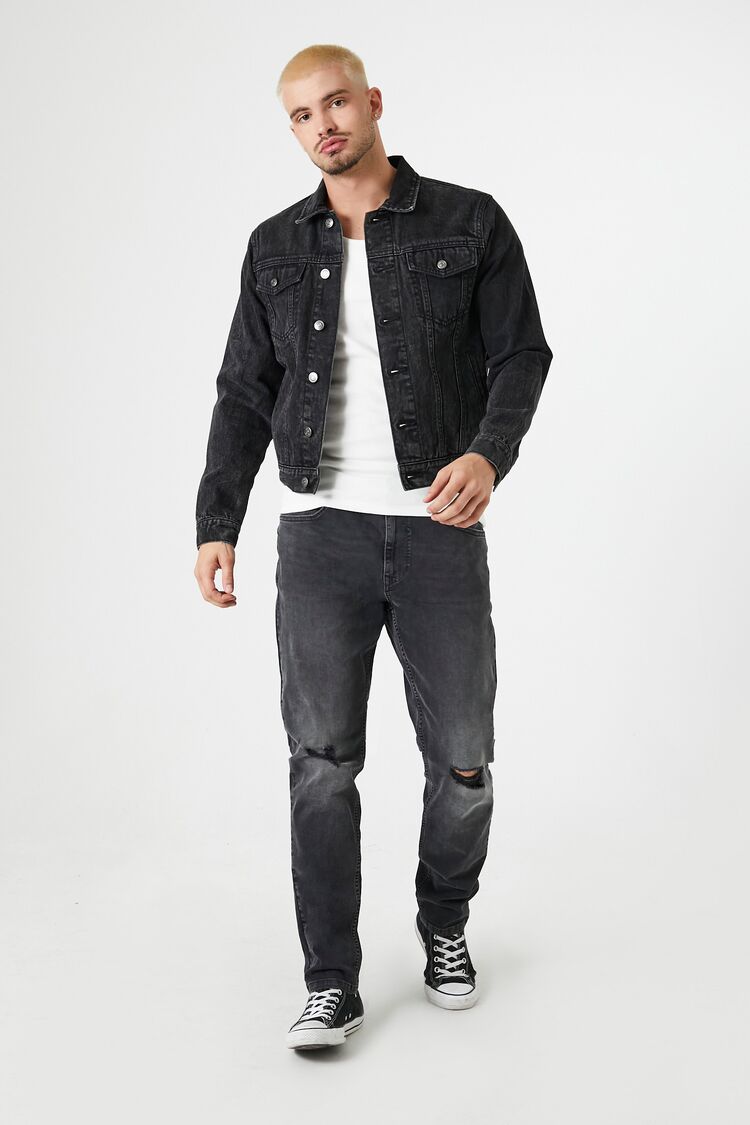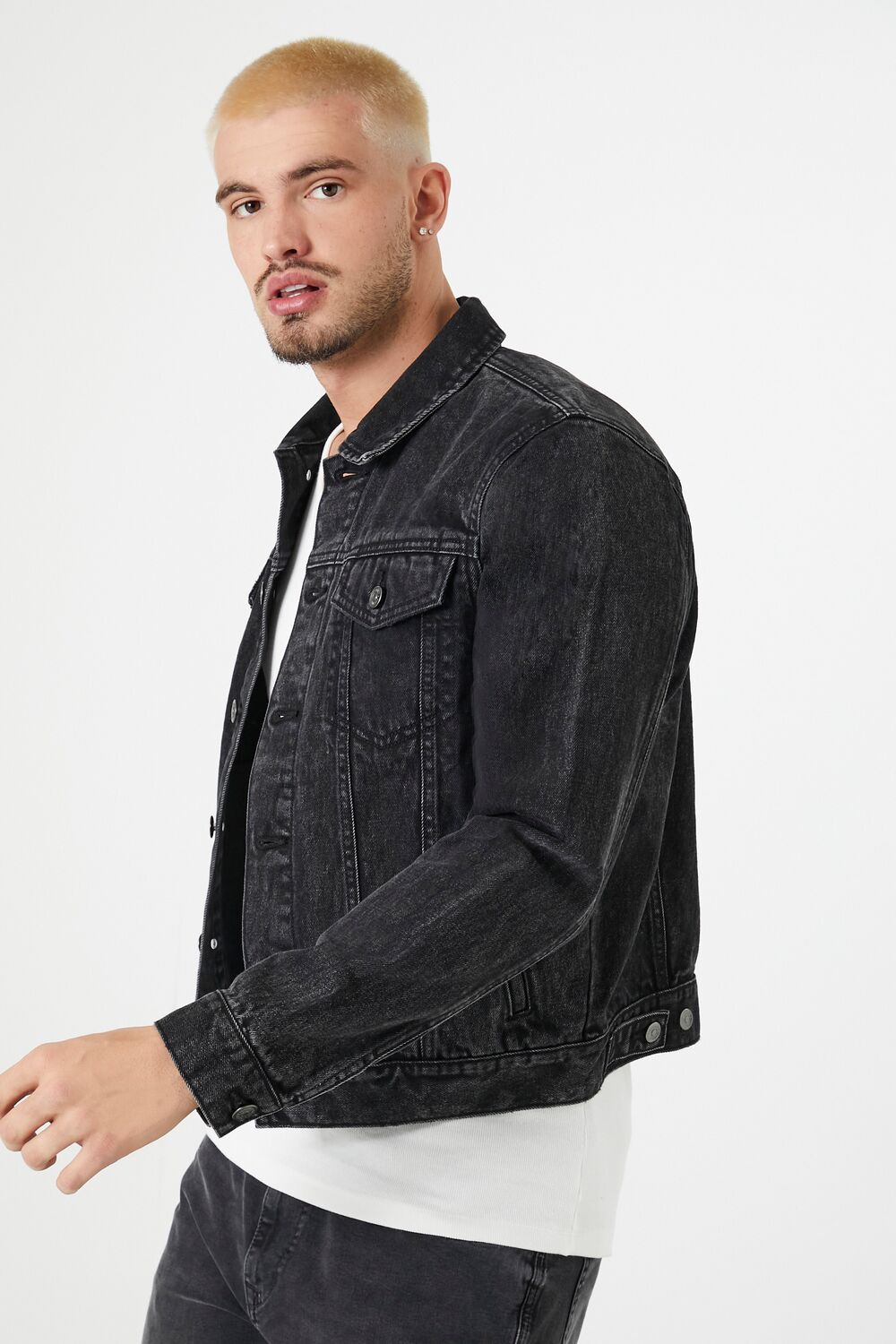 Crafted from non-stretch denim. this trucker jacket features a basic collar. button-front closures. buttoned chest flap pockets and hem. long sleeves with buttoned cuffs. and a classic silhouette.