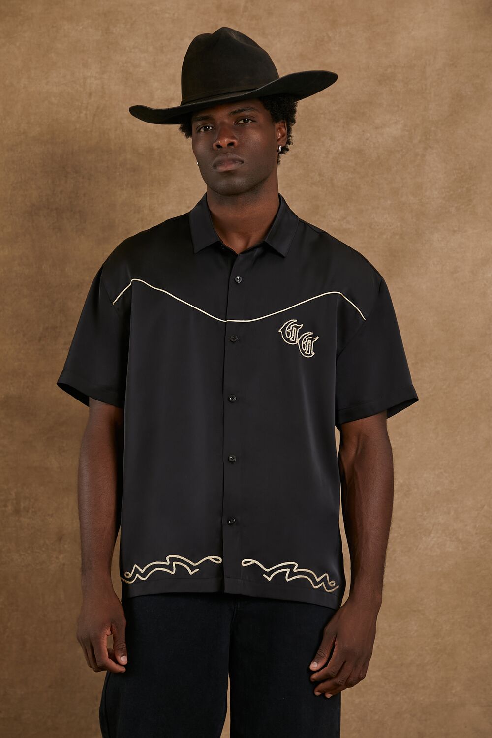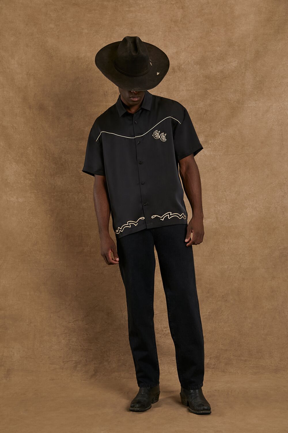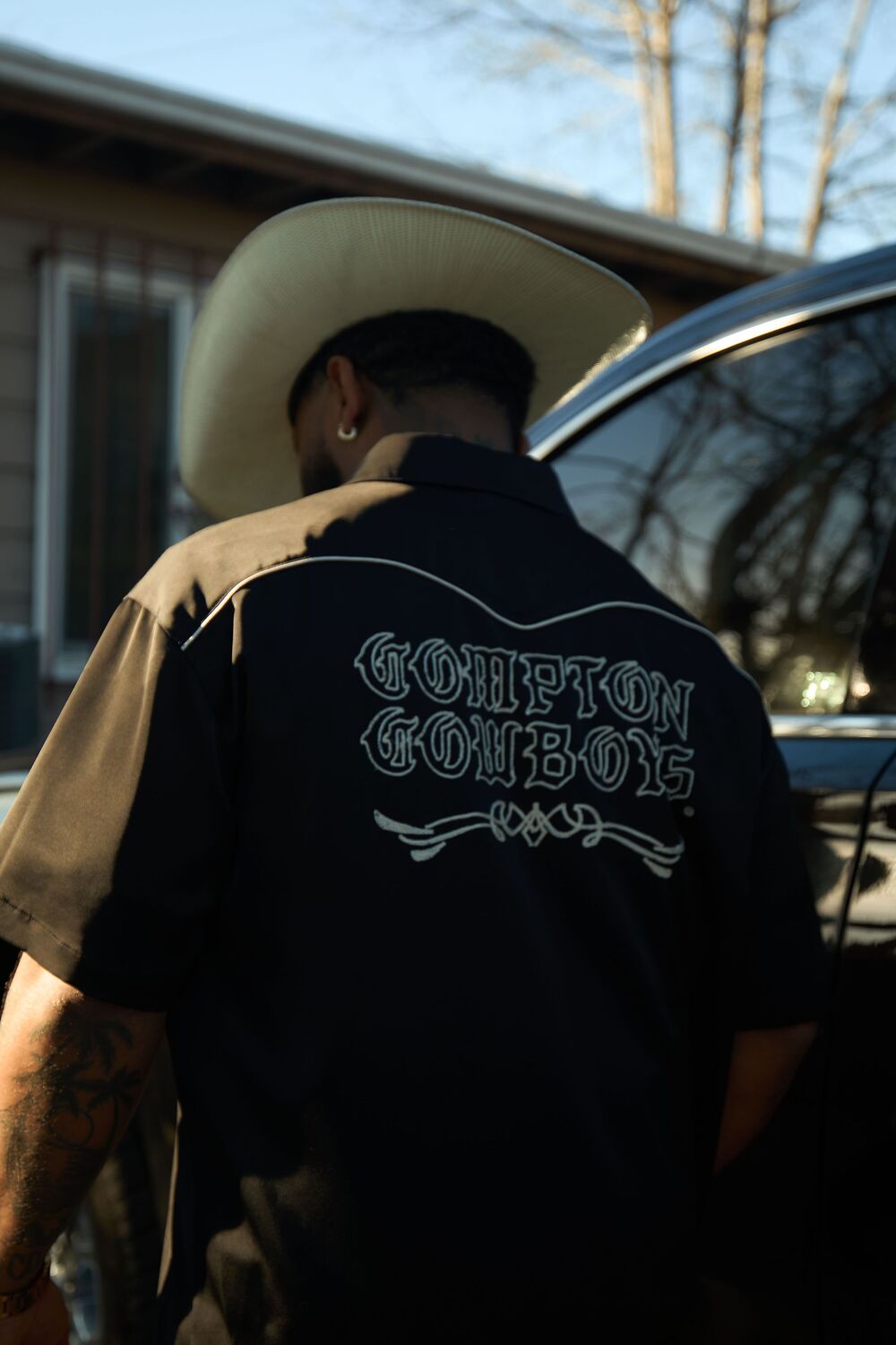 From our Compton Cowboys x Feelings Star collection. this woven shirt features contrasting front and back embroidery. chest 'CC' text. back 'Compton Cowboys' text. button-front closures. and a basic collar.