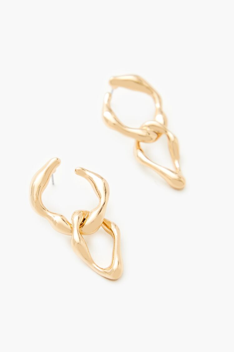 A set of high-polish drop earrings featuring a chain construction. abstract design. and post-back closures.