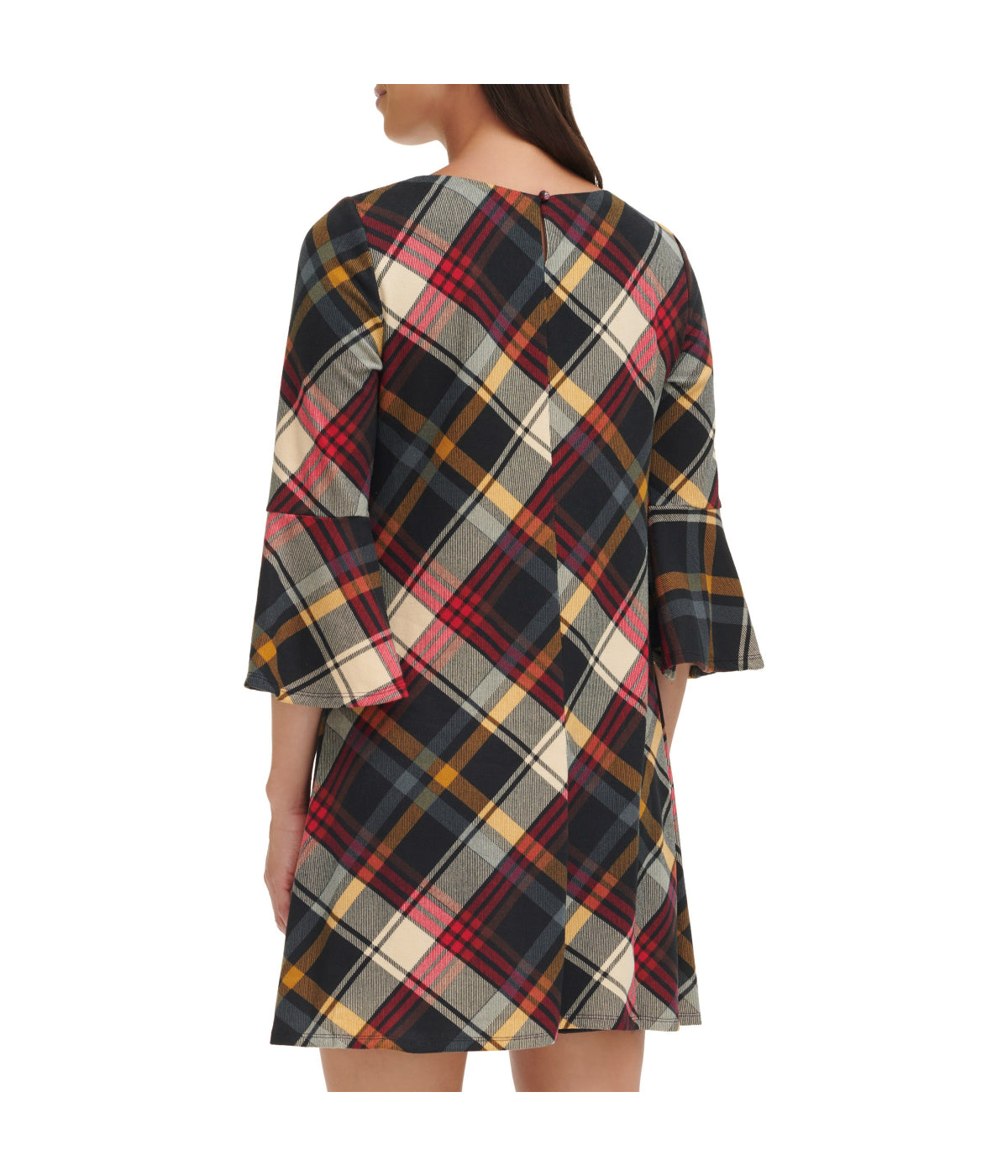 Elevate your style with this chic Bell Sleeve Trap Knit Melange Plaid dress. Its sophisticated boat neck and long sleeves make it a perfect choice for any occasion. Crafted with attention to detail. this short dress exudes elegance and features a timeless plaid pattern. Whether you're heading to a brunch or a casual evening out. this dress is a must-have for your wardrobe.