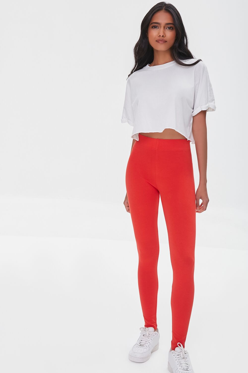 A pair of basic knit leggings crafted from organically grown cotton that features a high rise and banded waist.