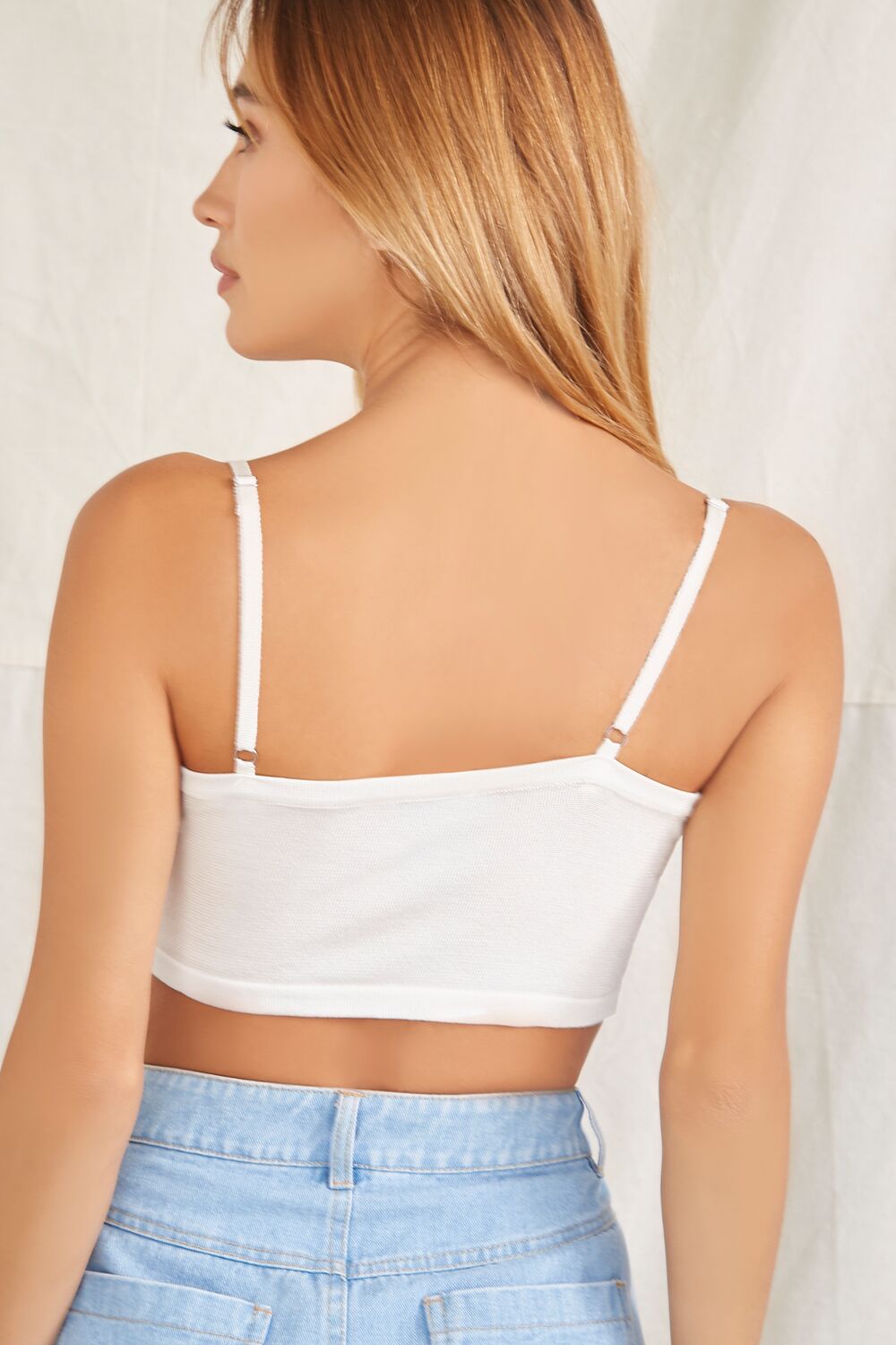 A knit set featuring a cami with straight-cut neckline and back. adjustable straps. and a cropped hem. as well as a matching cardigan sweater with a basic collar. button-front closures. long sleeves. and a longline hem.