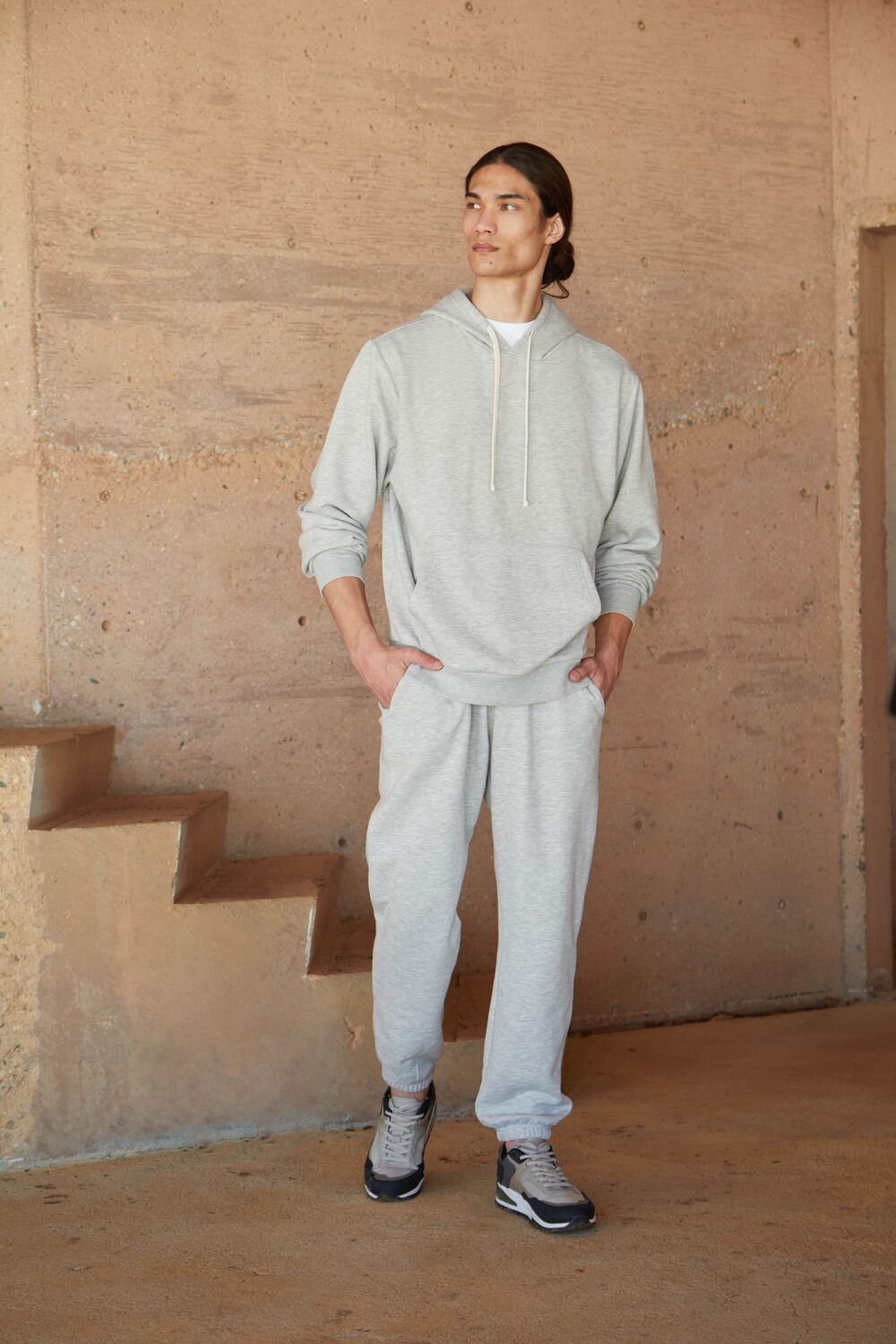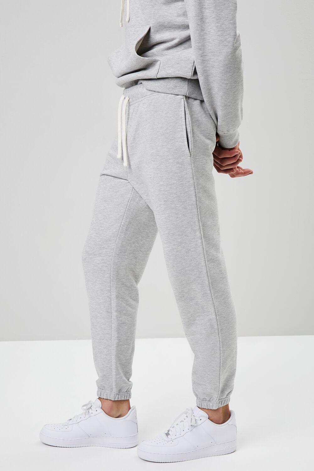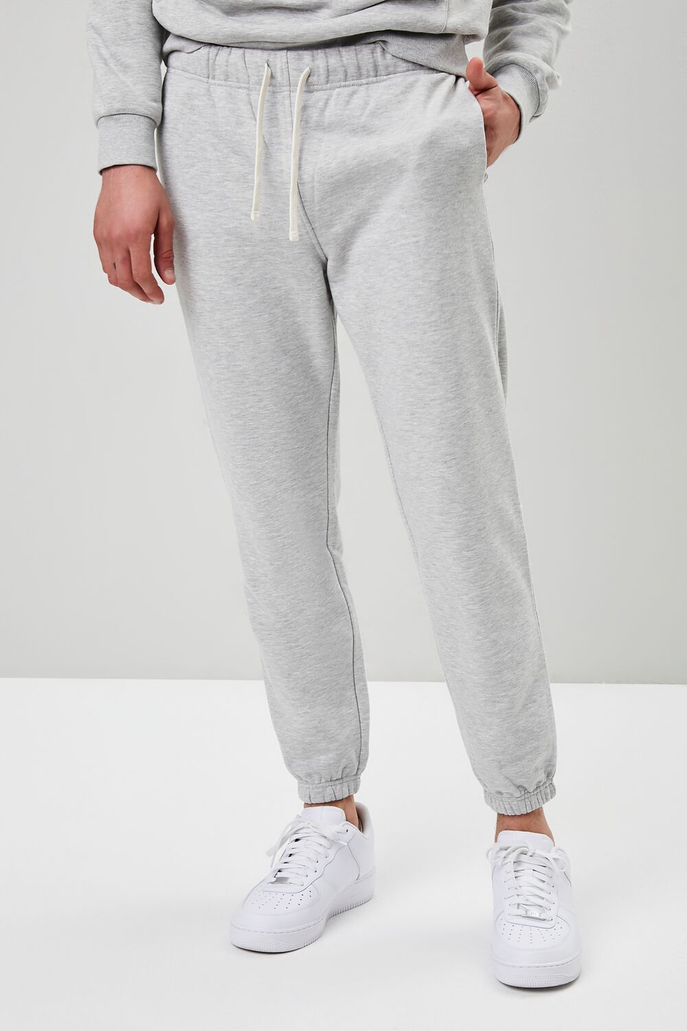 A basic pair of heathered knit joggers featuring a drawstring waist. back patch pocket. on-seam pockets. and ribbed trim.