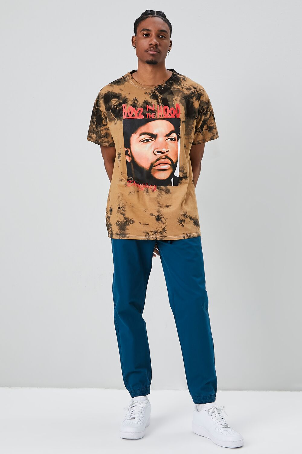 A knit tee featuring an allover bleach dye crew neck. front 'Boyz N The Hood' and 'Doughboy' text with accompanying graphic. and dropped short sleeves.